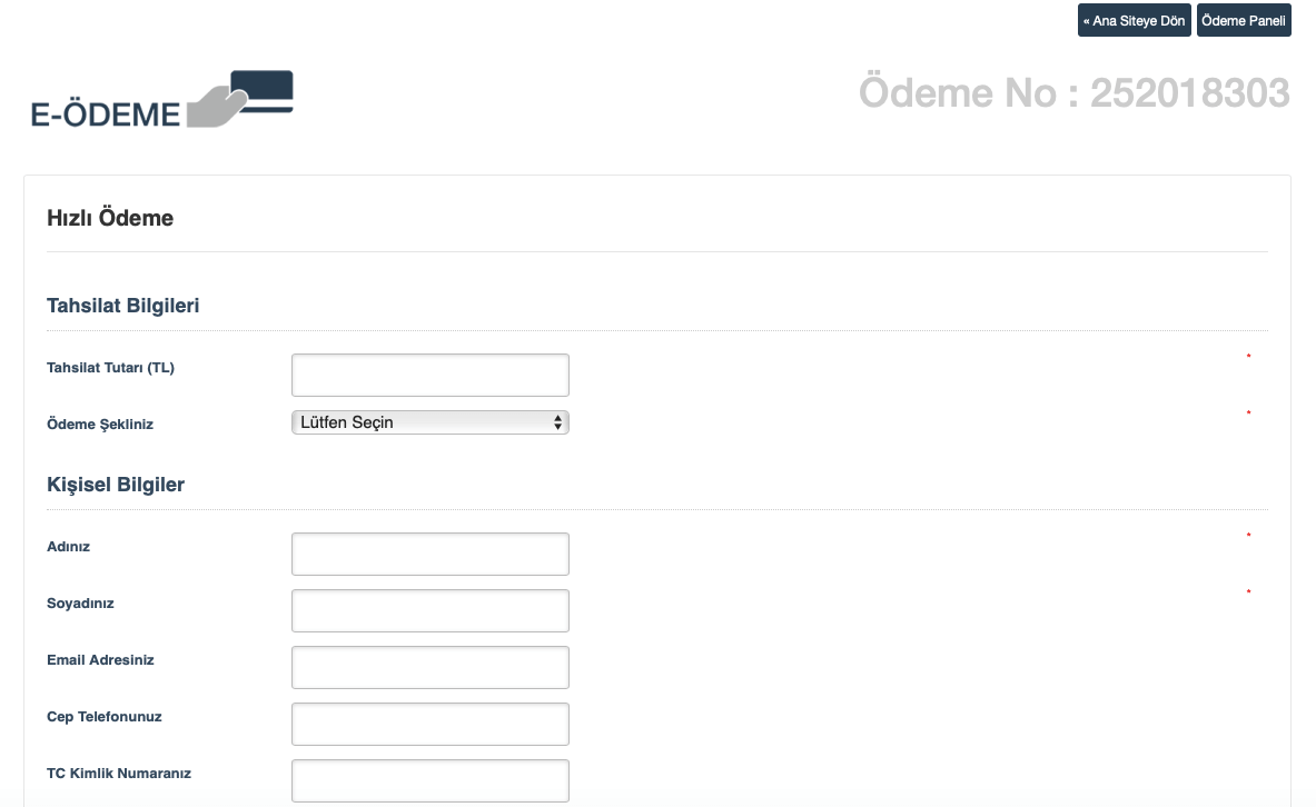 İki farklı şablon desteğiyle gelen alışverişsiz tahsilat modülü ile ödeme yapmak isteyen kullanıcılar bir kaç bilgisini ve ödeme tutarını girerek ödeme sisteminize ödeme gerçekleştirebilirler.