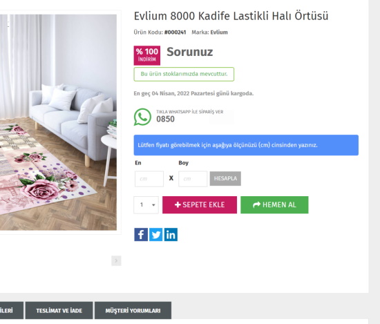 Ürün ölçü fiyatlandırma modülü ile en ve boy girişi yapılarak siparişi verilebilecek ürünlerinizin siparişlerini, bu girilen verilere göre fiyatlandırıp alabilirsiniz.