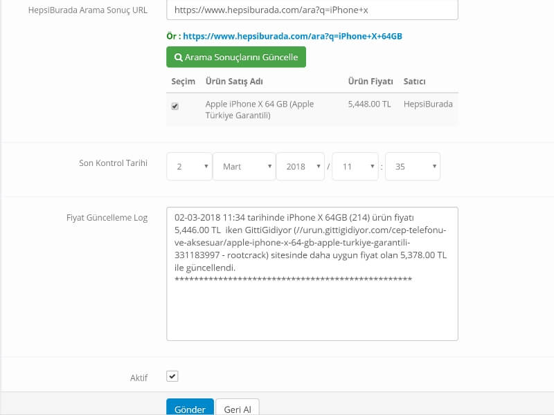 * Eğer ürün fiyatı değişirse, pazaryerlerinde otomatik güncelleme desteği.